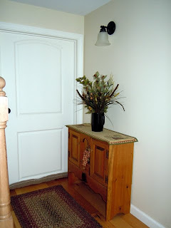 Coming in the front door, this is what you see....one of the light switches near the door turns on the sconce in the hallway. Our builder, who designed the house wanted to give it a...